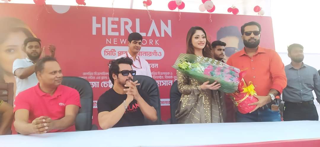 নারায়ণগঞ্জের সোনারগাঁয়ে রিমার্ক নামক বিদেশী কোম্পানি কতৃক উৎপাদিত হারলান নিউইয়র্ক ব্র্যান্ডের একটি কসমেটিকস বিক্রয়কেন্দ্র প্রধান অতিথি হিসেবে উদ্বোধন করছেন চিত্রনায়িকা পূজাচেরী।