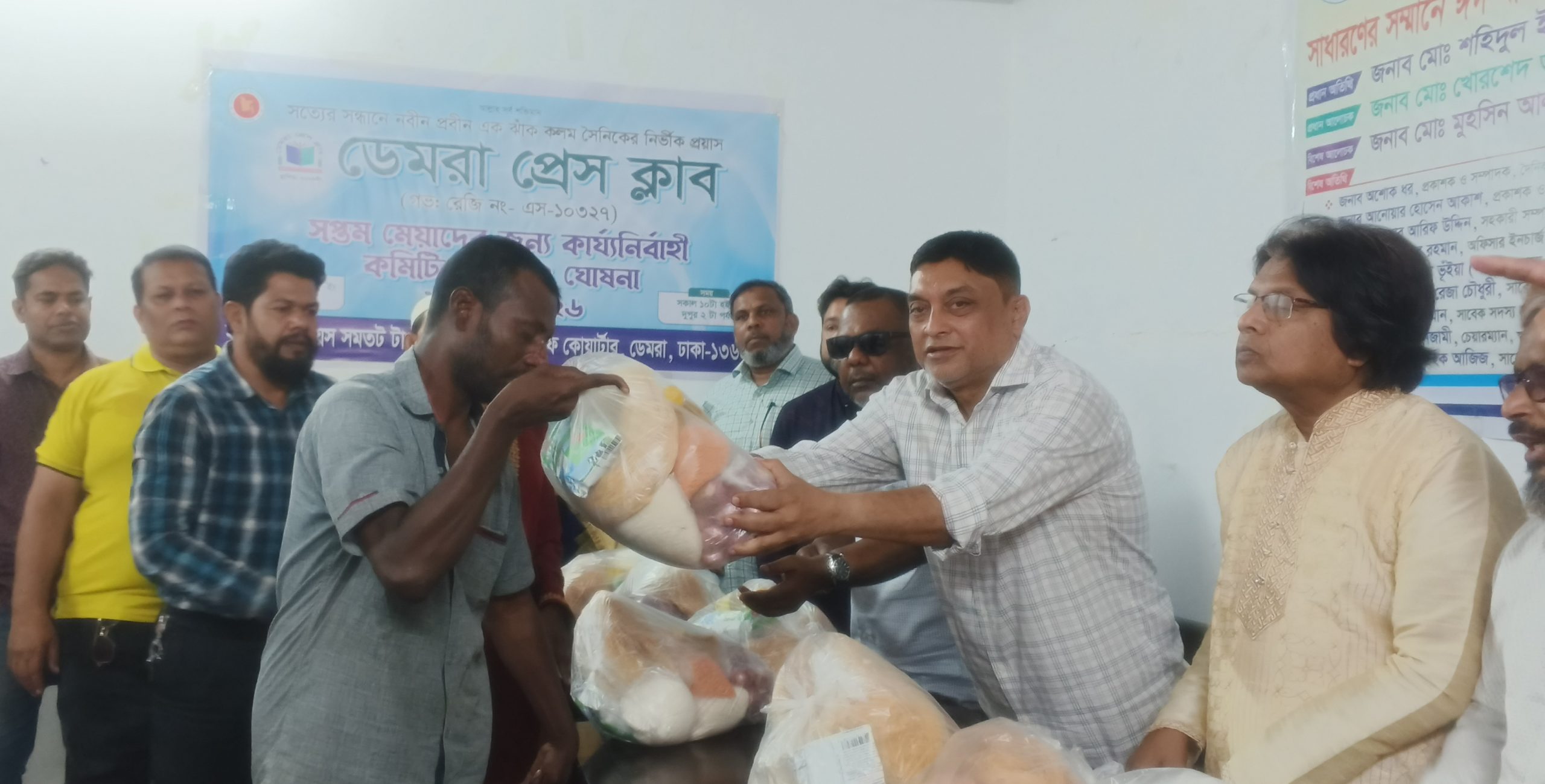 ১৮ ই মার্চ ২০২৫ ইং তারিখ সকাল ১১ ঘটিকার সময় স্টাফ কোয়ার্টার ডেমরাস্থ ইয়েস সমতট টাওয়ারের তৃতীয় তলায় ডেমরা প্রেস ক্লাবের সম্মেলন কক্ষে প্রায় ৩ শতাধিক দুস্তদের সম্মানে আসন্ন ঈদুল ফিতর উৎযাপন উপলক্ষে ঈদ খাবার সামগ্রী বিতরণ, দোয়া ও আলোচনা সভা অনুষ্ঠিত হয়। সভায় সভাপতিত্ব করেন রাজধানীর ঐতিহ্যবাহি ও সুনামধন্য ডেমরা প্রেস ক্লাবের প্রতিষ্ঠাতা ও সভাপতি প্রবীন সাংবাদিক নজরুল ইসলাম চৌধুরী। সভা সঞ্চালনা করেন ক্লাবের সিনিয়র সহ-সভাপতি ফেডারেশন অব বাংলাদেশ জার্নালিস্ট অর্গানাইজেশনের মহাসচিব মো: সামছুল আলম। সম্মানিত বিশেষ অতিথি হিসেবে উপস্থিত ছিলেন সফল সংগঠক অসাম্প্রদায়িক চেতনায় বিশ্বাসী দৈনিক স্বদেশ বিচিত্রার প্রকাশক ও সম্পাদক অশোক ধর, মানবতাবাদী প্রবীন সাংবাদিক দৈনিক স্বাধীন সংবাদ পত্রিকার প্রকাশক ও সম্পাদক আনোয়ার হোসেন আকাশ, ডেমরা থানা বি.এন.পি সমন্বয়ক কমিটির আহবায়ক ও সদস্য সচিব যথাক্রমে ডেমরা মাটি ও মানুষের প্রিয় নেতা সেলিম রেজা চৌধুরী ও আনিসুজ্জামান। এছাড়া উপস্থিত ছিলেন দৈনিক ঐর্ষি বাংলা পত্রিকার সহকারী সম্পাদক সরওয়ার আরিফ, জাতীয়তাবাদী ছাত্র দলের সাবেক সভাপতি আজিজুল হক আজিজ, ৬৬ নল ওয়ার্ড বি.এন.পি সভাপতি নূর হোসেন ভুঁইয়া। সম্পাদক অশোক ধর ও আনোয়ার হোসেন আকাশ তাদের বক্তব্যে সিয়াম সাধনের তাত্পর্য বর্ননা পূর্বক সাংবাদিকদের উদ্দেশ্যে সত্য সংবাদ চর্চা করার অনুরোধ করেন। জেল জুলুমের শিকার জননেতা সেলিম রেজা চৌধুরী ও আনিসুজ্জামান তাদের বক্তব্যে বি.এন.পির ভারপ্রাপ্ত চেয়ারম্যান জনাব তারেক রহমানের ঘোশিত ৩১ দফা বাস্তবায়নের আলোকে সাংবাদিকদেরকে লেখা লেখির জন্য অনুরোধ করেন। অন্যান্যদের মধ্যে উপস্থিত ছিলেন বাংলাদেশ তথ্য ও মানবাধিকার ফাউন্ডেশনের বাইস চেয়ারম্যান কবিতা ইসলাম ও পরিচালক তদন্ত রুমেল সরকার, ক্লাবের সাধারণ সম্পাদক রিয়াজ উদ্দিন, যুগ্ম সাধারণ সম্পাদক যথাক্রমে বিমল সরকার, এ.আর হানিফ, হোসেন মিয়া, শরিফ আহমেদ, প্রচার ও প্রকাশনা সম্পাদক রাজিব হোসেন রাজু,সাংগঠনিক সম্পাদক মোঃ ইব্রাহিম, ক্রিড়া সম্পাদক আজাদ হোসেন ও সাংবাদিক আজম ইকবাল।