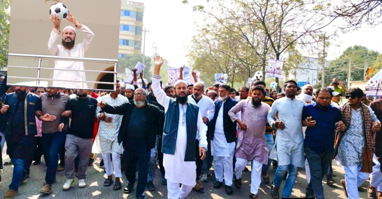 এ সময় হাজার হাজার কর্মী-সমর্থক “ফুটবল মার্কায় ভোট দিন”, “মাকসুদ ভাই এগিয়ে চলুন”—এমন নানা স্লোগানে রাজপথ প্রকম্পিত করে তোলে। গণসংযোগকালে আলহাজ্ব মোঃ মাকসুদ হোসেন সাধারণ মানুষের সঙ্গে কুশল বিনিময় করেন এবং ভোটারদের দোয়া ও সমর্থন কামনা করেন।