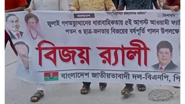 আমাদের স্বাধীন দেশ সোনারগাঁও প্রতিনিধি: নাজমুল হাসান জয় ৫ ই আগস্ট উপজেলার মোগরা পাড়া চৌরাস্তা জামে মসজিদের সামনে থেকে বিজয়ের র্যালীটি পিরোজপুর ইউনিয়ন পরিষদ চত্বর হয়ে ঢাকা-চট্টগ্রাম মহাসড়ক আজহারুল ইসলাম